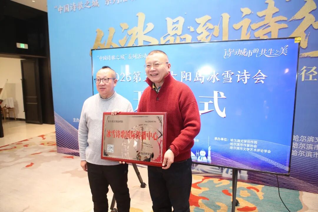 冰雪于哈尔滨,是自然的馈赠,更是刻入城市肌理的独特禀赋;而诗歌,恰是诠释这份禀赋的最佳语言。自创办以来,太阳岛冰雪诗会已成功举办两届,不仅积累了深厚的文化底蕴,更吸引了舒婷、梁平、李琦、娜夜等诗坛名家倾情参与,为哈尔滨这座“中国诗歌之城”增添了浓墨重彩的一笔。本届诗会以冰雪为媒、以诗歌为桥,再度汇聚国内外文学力量。中国作协诗歌委员会主任、中国作家协会原副主席、书记处书记吉狄马加,中国诗歌学会常务副会长兼秘书长王山,湖北作家协会原副主席田禾,中国音乐家协会理事、中国音协《词刊》副主编杨启舫,德国诗人卡斯滕·施泰因梅茨、赫伯特·贝斯滕、弗兰卡·舒马赫,青海省作家协会主席梅卓,《特区文学》杂志社社长、总编辑朱铁军,《黄河》主编王国伟,诗人白海,《人民日报》推介千万粉丝知识博主赵健,诗人、《诗刊》社办公室主任张志刚,中国诗歌学会社会活动部主任马文秀等众多国内外著名诗人、学者与文化嘉宾齐聚冰城,诗歌与城市再度相互照亮,让世界看见哈尔滨独特的文化魅力与精神高度。开幕式上,哈尔滨市文联党组书记孙建伟现场发布《冰雪诗歌发展报告》,这份凝结着文学智慧的研究成果,以八十余位优秀诗人的冰雪诗作为样本,既深耕理论土壤,又立足创作实践,为冰雪诗歌突破题材局限、打破表达瓶颈提供了学理支撑,更为冰雪诗歌突破题材局限、联动文旅产业提供了清晰路径。授牌仪式环节更是掌声雷动,中国诗歌学会社会活动部主任马文秀宣读“冰雪诗歌国际传播中心”授牌文件,中国诗歌学会常务副会长兼秘书长王山为哈尔滨文学创作院正式授牌。这一荣誉既是对哈尔滨冰雪诗歌创作传播成果的高度认可,更为冰雪文化走向世界搭建了重要平台。随后,吉狄马加发表讲话并宣布诗会开幕,并现场为此次活动写下“中国诗歌之城哈尔滨”题词,正式拉开了这场文化盛宴的序幕。“从冰晶到诗行——冰雪诗歌的创作实践与传播路径”主旨座谈会上,海内外文学界翘楚贤达共赴智慧之约。吉狄马加、王山、田禾、杨启舫、梅卓、朱铁军、王国伟、白海、张志刚,以及德国诗人卡斯滕·施泰因梅茨、赫伯特·贝斯滕、弗兰卡·舒马赫等国际友人,与本地著名诗人薛兰奎、桑克、鲁微、章海宁、安海茵、赵亚东、孙胜杰、任毅、梁甜甜等创作中坚齐聚一堂,围绕四大核心议题展开深度研讨。在“冰雪意象的地域表达”议题中,明确了“冰雪+人文”的创作核心,懂得了地域肌理与人文温度是冰雪诗歌的独特标识;在“诗会品牌的新时代升级”议题中,理清了“经典+当代”的发展路径,明晰了传承与创新并重的品牌建设方向;在“数字时代的传播破圈”议题中,找到了“小众+大众”的传播方法,解锁了融媒体矩阵与场景互动的传播密码;在“诗歌与文旅的深度融合”议题中,探索了“文学+产业”的融合模式,看到了冰雪诗歌赋能冰雪经济的广阔空间。中外嘉宾的跨界交流、名家之间的思想碰撞,让本次座谈会既有理论深度,又有实践价值;既立足哈尔滨本土,又放眼国际视野,真正实现了“以诗为媒、以会聚力”的初衷。